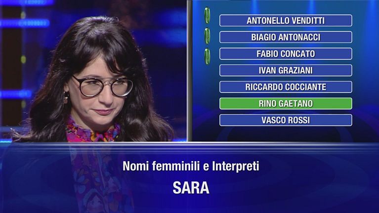 La campionessa deve indovinare la risposta giusta tra le 10 proposte.