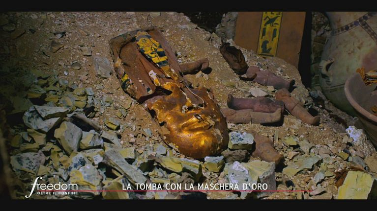 Una tomba con all'interno, oltre a dei resti umani e a un sarcofago, anche una maschera d'oro.