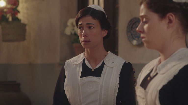 Gregorio, su mandato di Alonso, torchia e minaccia la servitù di future epurazioni se non salterà fuori la spilla rubata, e avvisa che chiederà ai signori di dare mandato alla Guardia Civile di proseguire le indagini sul furto. Pia sostiene Romulo, ormai abbattuto dal ruolo di Gregorio, e lo spinge a non mollare. Don Gregorio sorprende Jana davanti alla stanza di Manuel e le ordina di starne alla larga. La famiglia De Lujan trascorre tutta la giornata lontana da La Promessa per il funerale del barone De Linaja; alla funzione partecipano anche Petra e Padre Camilo. Manuel continua a sentire un inspiegabile profumo di camomilla e Jimena lo plagia, raccontandogli bugie sulla loro storia.