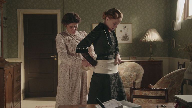Donna Pia teme che la sua pancia da gravidanza possa diventare visibile e Candela la aiuta a nasconderla.