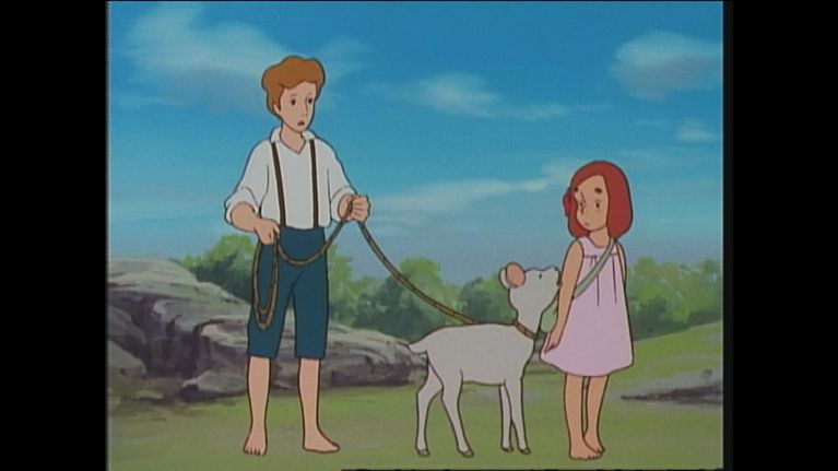 Flo e' molto allegra perche' finalmente puo' andare a caccia con il padre e il fratello ma alla vista dell'uccellino ucciso da Franz, si rattrista molto. Per la strada catturano una capretta che non ne vuole sapere di essere portata al guinzaglio...
