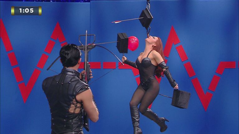 Kimberly Zavatta e Nicol Nicols metteranno alla prova il loro coraggio con un tentativo di record molto avvincente: esplodere con una freccia 5 palloncini tenuti da una persona appesa per i denti entro 70 secondi.