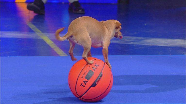 Il chihuahua Milo deve eseguire almeno 5 passaggi consecutivi sopra dei palloni da basket.