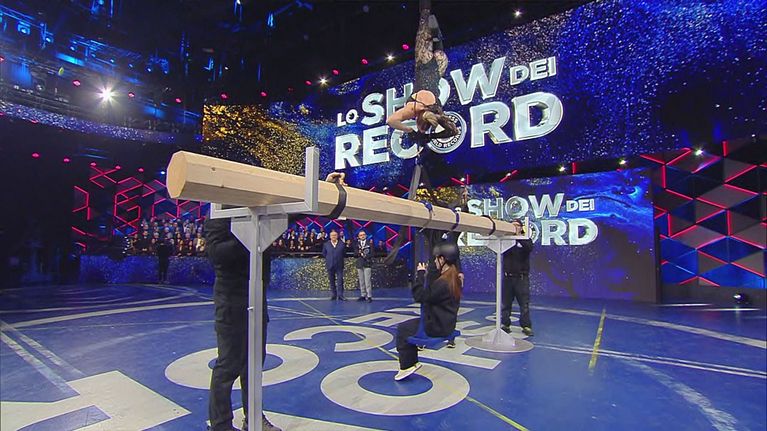 Per battere il record, Loretta Antal deve sollevare 130 kg con i denti agganciata a testa in giù per almeno 10 secondi.