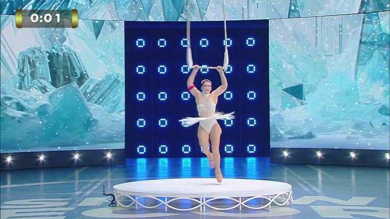 Kasia Queen of Ice tenterà di eseguire almeno 70 giri sulla punta di un pattino da ghiaccio tenendosi a un trapezio entro 30 secondi.