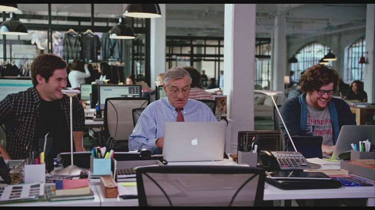 I premi Oscar R. De Niro e A. Hathaway in un film sul confronto generazionale. Un arzillo pensionato si propone come stagista presso un sito di moda online.