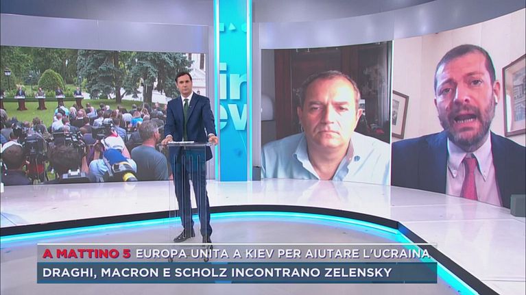 A Mattino 5 Draghi a Kiev insieme a Macron e Scholz