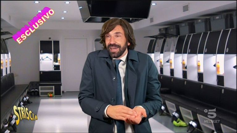 Andrea Pirlo si rivolge ai suoi giocatori per incitarli prima della partita col Cagliari, ma ha le idee un po' confuse sul da farsi