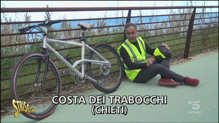 Luca Galtieri si trova a Costa dei Trabocchi (Chieti), alla scoperta della pista ciclabile che coinvolge 19 comuni, una delle più lunghe d'Europa. Peccato che la tratta tra Ortona e Vasto sia ancora incompiuta da parecchi anni.