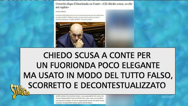 Quando Guido Crosetto ha scoperto di essere stato pizzicato da Striscia nel fuorionda in cui dà del "deficiente" a Giuseppe Conte, ha cercato di metterci una toppa accusandoci di aver decontestualizzato il video. Peccato che le cose siano andate diversamente
