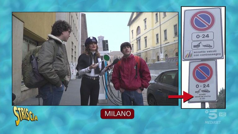 Chiara Squaglia è nel centro di Milano per raccontare una storia di psicosegnaletica: che fare se due divieti di sosta contrastanti sono appesi allo stesso palo? Quale dei due prevale? C'è chi è stato multato per uno dei due segnali mentre l'altro gli permetteva di parcheggiare. Chi ha ragione?