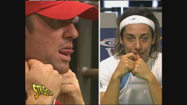 Il dialogo piuttosto osè tra la campionessa di tennis Francesca Schiavone e un signore in tribuna.