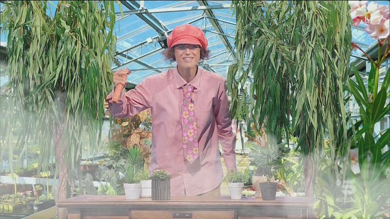 Gerry Scotti e Luca Sardella, alias Michelle Hunziker, introducono la puntata di lunedì 25 aprile 2022