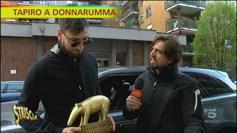 Il portiere rossonero, intercettato a Milano da Valerio Staffelli, riceve il suo primo Tapiro d'oro dopo la papera che ha fatto perdere al Milan la partita contro la Sampdoria