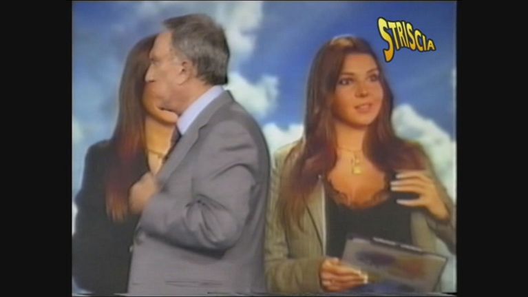 Nel fuori onda il direttore disserta sui no global mentre alle sue spalle le gemelline del meteo si danno l'ultima sistemata all'equipaggiamento