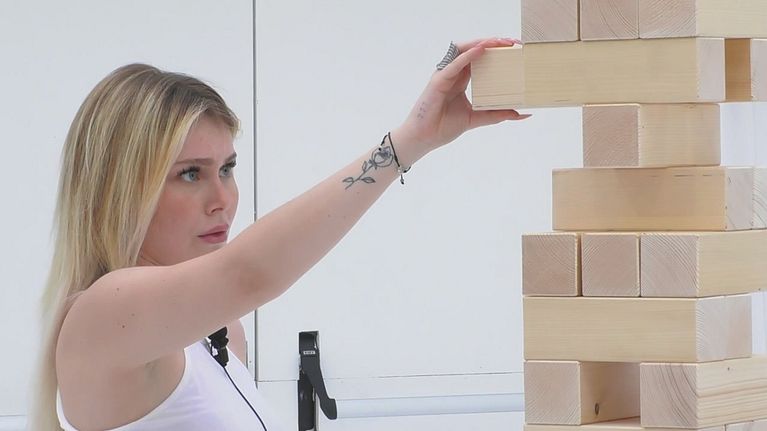 Jasmine Carrisi e Pierangelo Greco affrontano Antonino Spinalbese e Andrea Tabanelli in una gara di precisione. Chi riuscirà a sfilare più mattoncini senza far crollare tutto?