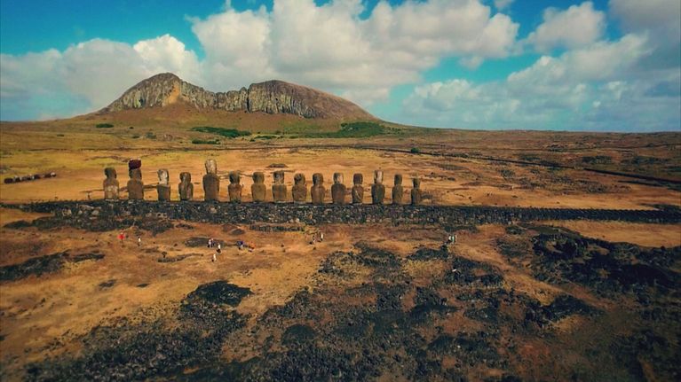Le misteriose statue dell'isola di Pasqua,una delle isole più remote della Terra. Perchè erigere questi giganti torreggianti di pietra? E perchè sono stati abbattuti?
